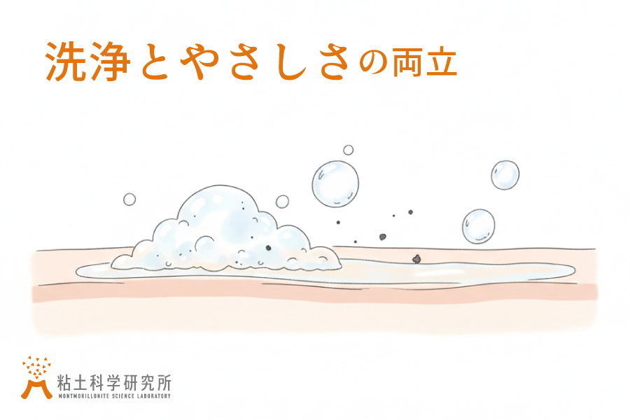 一方で洗浄力が不足する一面もあり、天然クレイの一種モンモリロナイトと組み合わせることで、洗浄力向上、さらに心地よい洗い上がりと低刺激性をサポートできます。